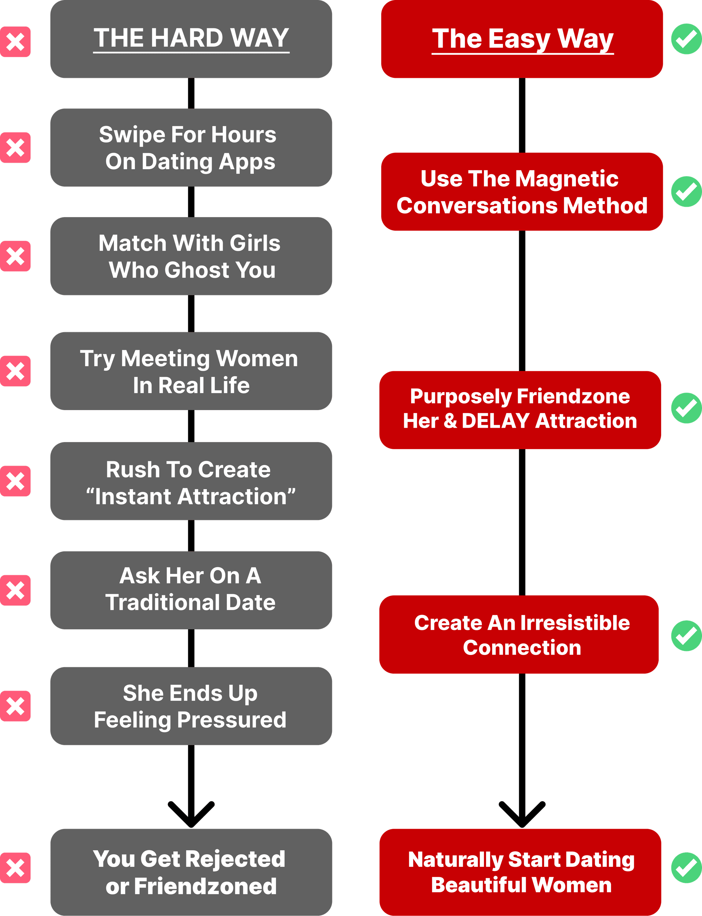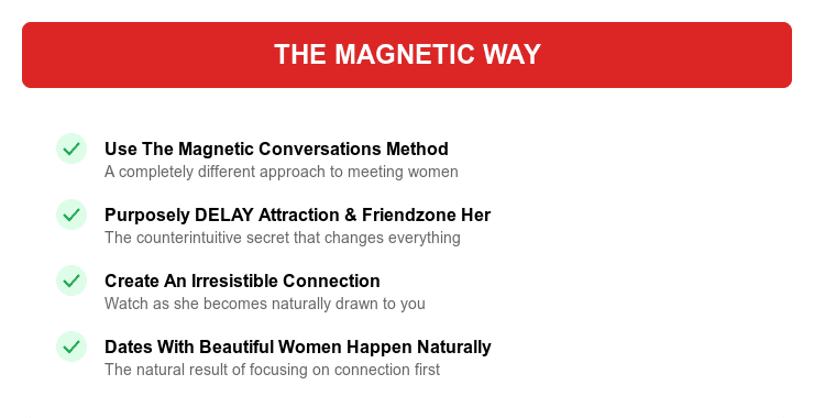 Unlike traditional dating advice that teaches you how to "attract" women in the first 5 minutes, the Magnetic Conversations Method takes a completely different approach.
