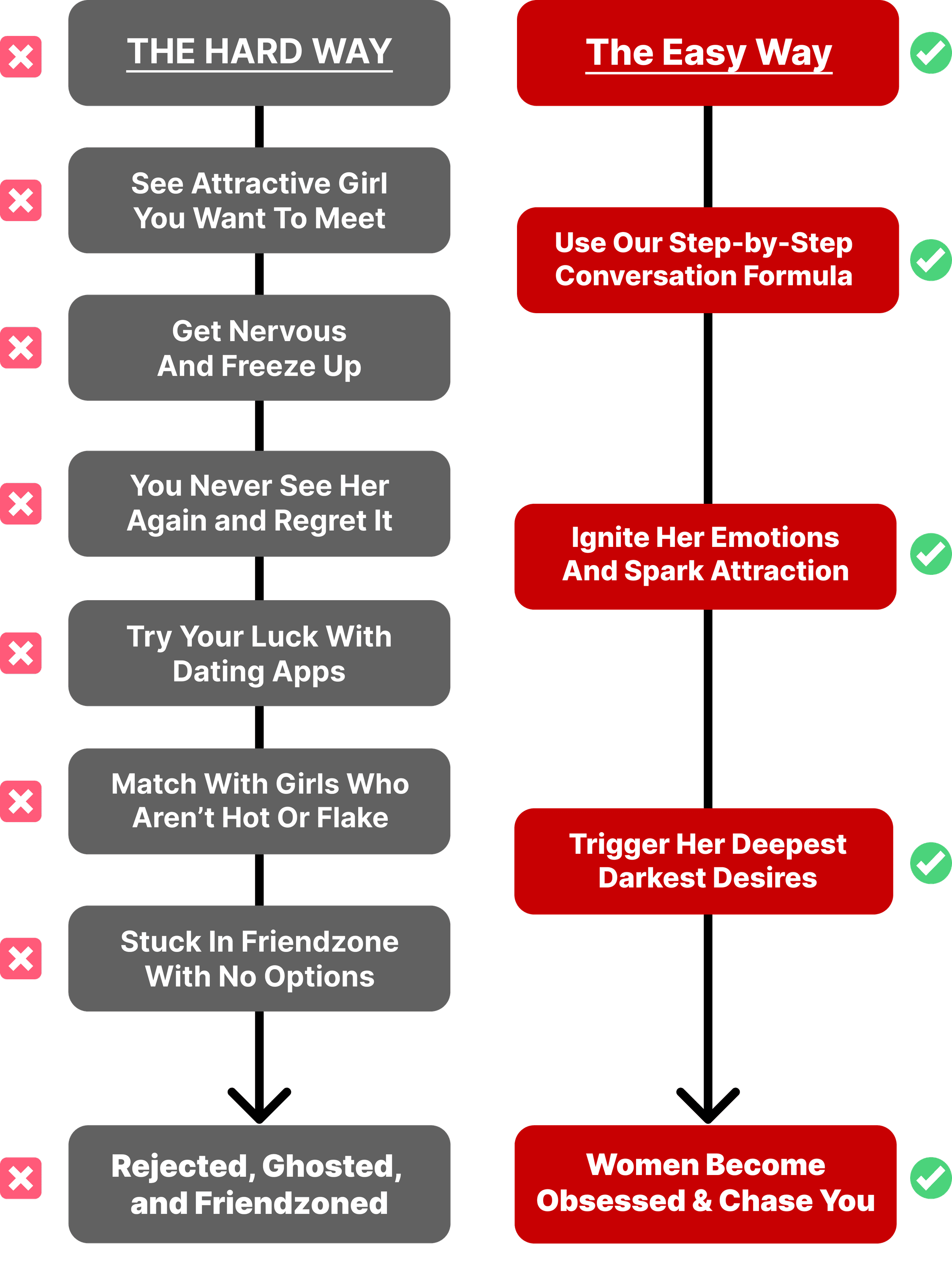 All you have to do is follow the steps and you’ll always know what to say, how to get her interested, and build a real connection.