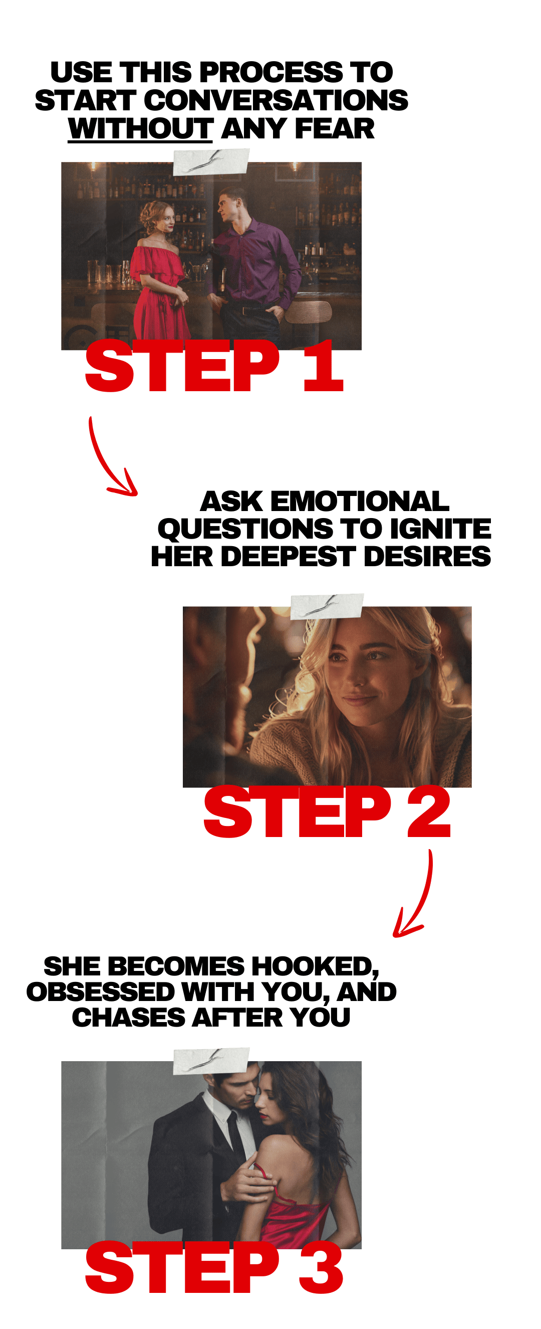 Step 1 - Start Natural Conversations Anywhere - You'll learn our proven conversation starters that work at cafes, stores, gyms, and social events - making approaching feel completely natural
